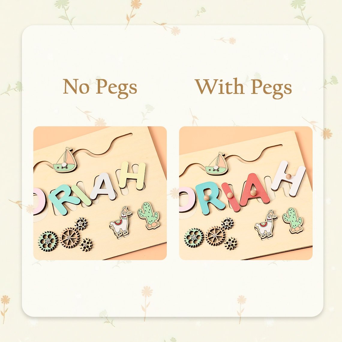 • Fully Customizable Name Puzzle Add your child’s name (up to 12 letters) and choose your color palette—rainbow, pastel, or neutral—for a puzzle that’s uniquely theirs.