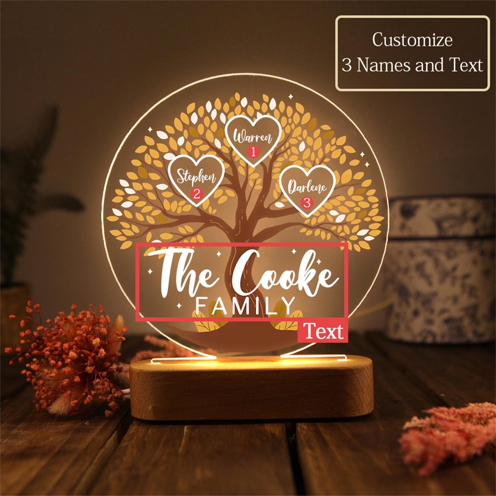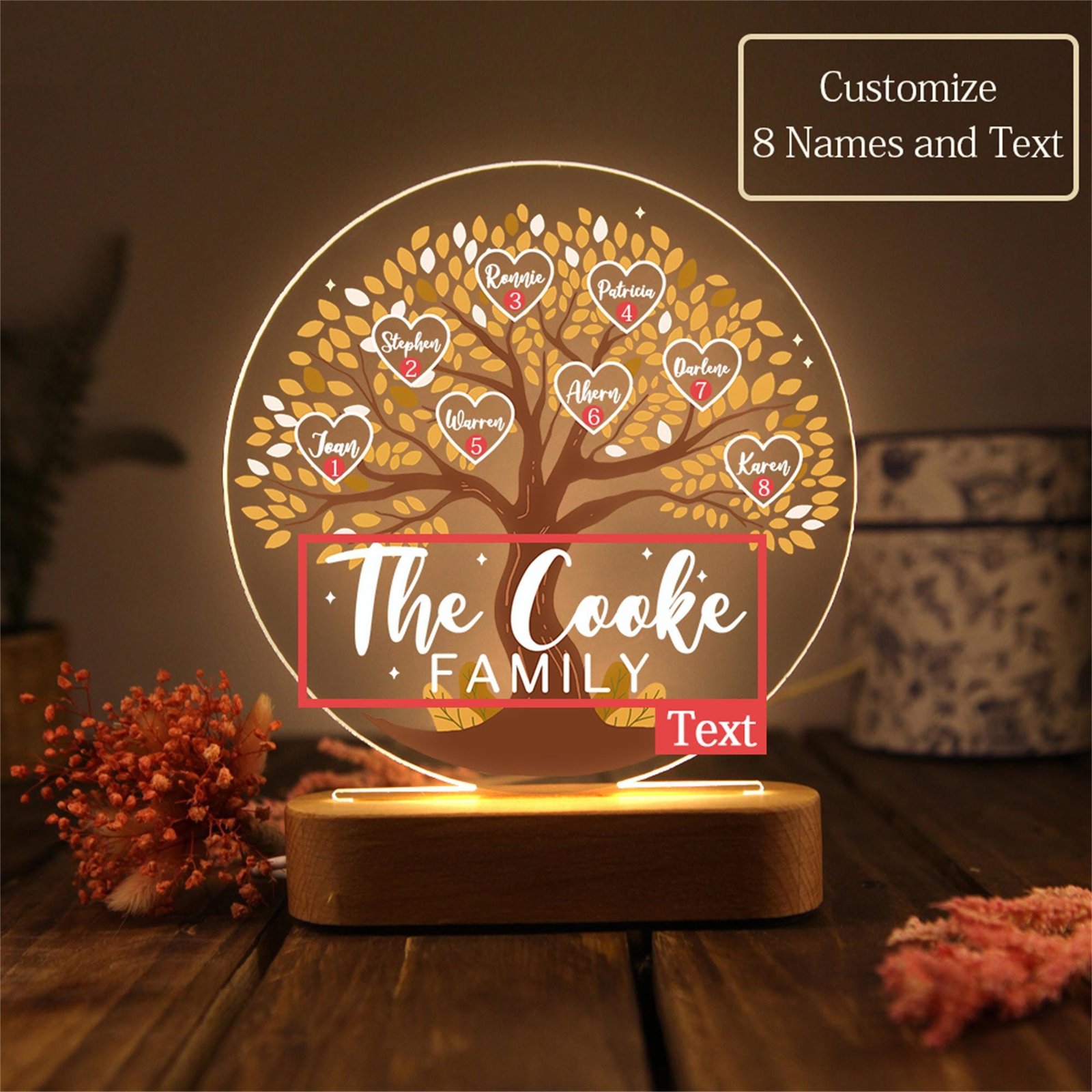 - Custom Kid’s Names: Personalize the Tree of Life night light with the names of Grandma’s beloved grandkids, creating a unique and meaningful touch that celebrates family bonds and unity.
